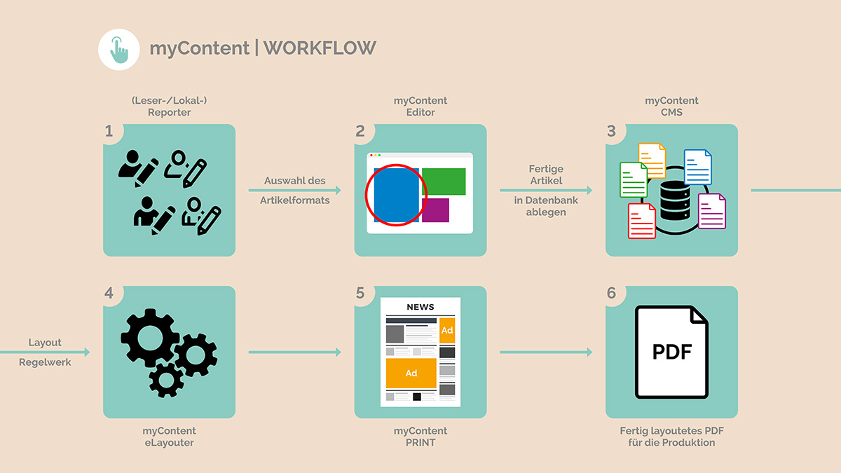 Zur Zukunft der modernen Zeitungsproduktion gehört ein Tool, das Seiten automatisiert erstellt und so bei Standard-Layouts bis zu 15 Minuten Arbeitszeit pro Seite einspart. Vorlageseiten manuell anpassen, mühsam passende Artikel raussuchen und aus starren Layouts eine Zeitung oder ein Magazin bauen? Das zeitraubende, suboptimale Puzzlespiel gehört ab sofort der Vergangenheit an. – Und selbstverständlich ist der eLayouter die perfekte Ergänzung zu unserem myContent CMS.